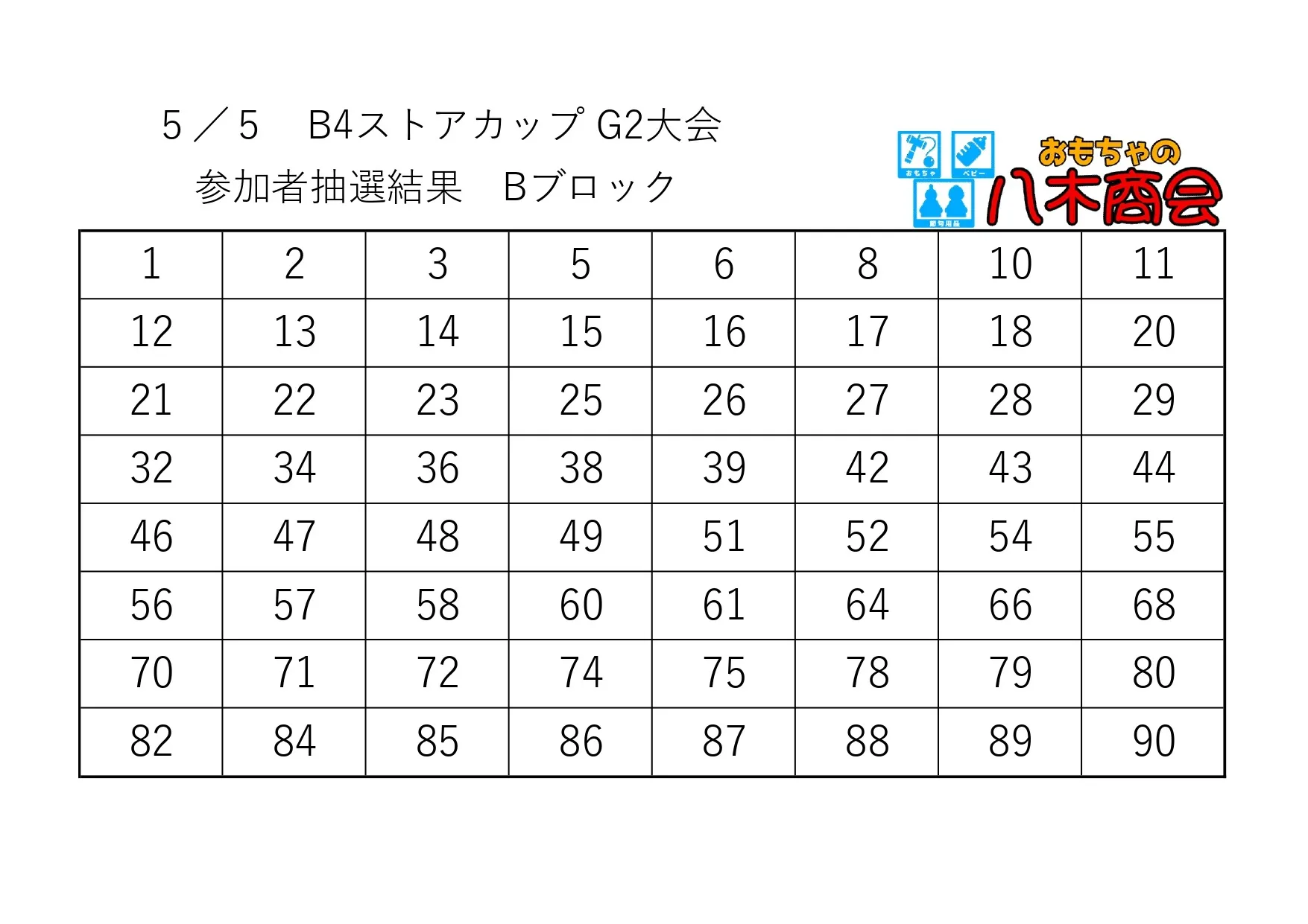 5/5(月祝)B4ストアカップ G2大会 参加者抽選結果及び当日について